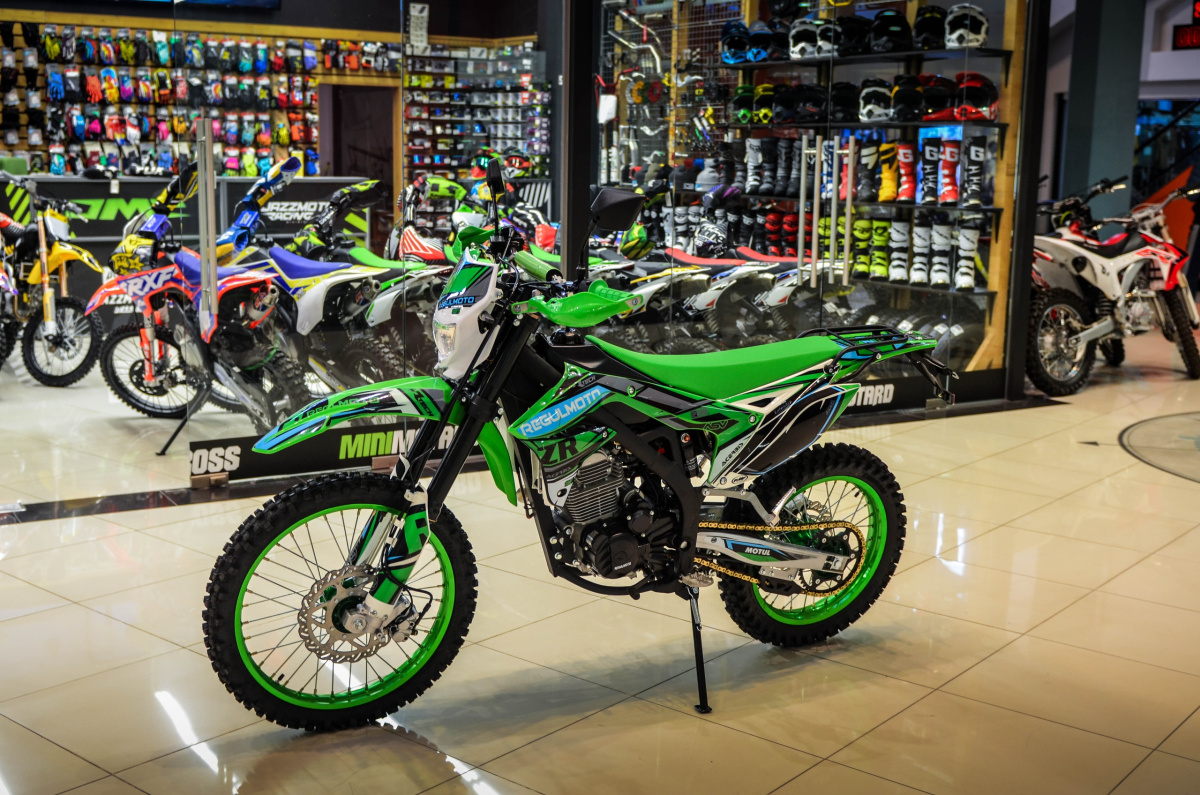 Мотоцикл Regulmoto ZR 250 Enduro 21/18 - это стильный и доступный байк многоцелевого назначения. Мощная стальная рама, алюминиевые обода колес с усиленными спицами и фиксаторами покрышек, длинноходная передняя вилка перевернутого типа, задний маятник с прогрессией и моноамортизатором с антишоковым,  расширительным баллоном  и настройками отбоя и сжатия создают этой модели байка необходимый запас прочности и функциональности для его использования в различных условиях, от любительских покатушек до серьезных эндуро выездов. Regulmoto ZR 250 оборудован надежным одноцилиндровым 4-тактным двигателем Zongshen ZS172FMM-3A с воздушным охлаждением рабочим объемом в 249,9 см3 и карбюратором Nibbi PE28. Байк оборудован электронной панелью приборов, электростартером, прочным толстостенным рулем переменного сечения, усиленной сальниковой цепью 520. В штатной комплектации байк оборудован подножками пас